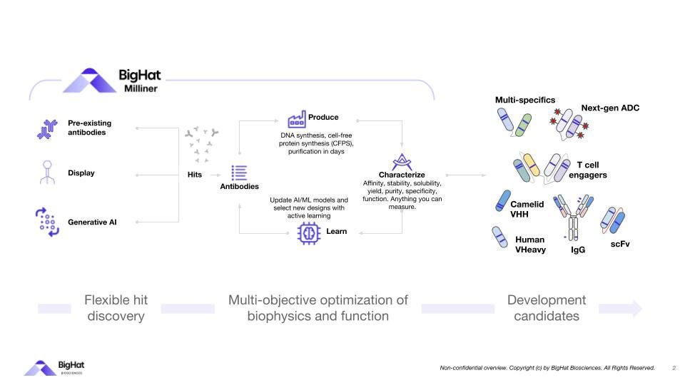 BigHat uses its platform, Milliner, to integrate advanced machine learning with synthetic biology to make Abs development faster and more successful.