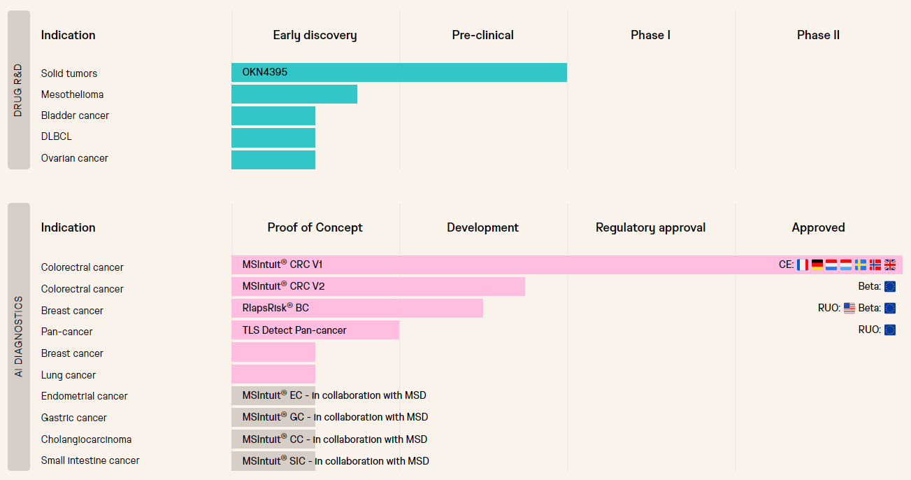 Owkin's pipeline features four early-stage de novo drug discovery programs alongside this patent-protected asset. The company leverages its proprietary AI engines for biomarker discovery and drug positioning, optimizing clinical trials and patient selection.