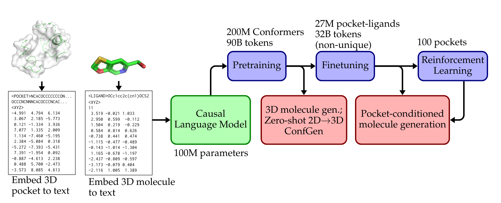 Read the preprint: BindGPT: A Scalable Framework for 3D Molecular Design via Language Modeling and Reinforcement Learning.